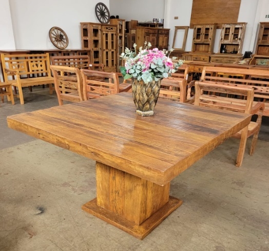 Mesa De Jantar Quadrada 1,30X1,30MT Pé Central Caixote Madeira Demolição Rustico