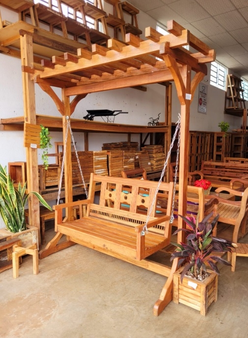 Balanço Pergolado Tradicional C/ Telhado Banco Namoradeira 1,30MT Madeira Demolição Canaf SR Rustico