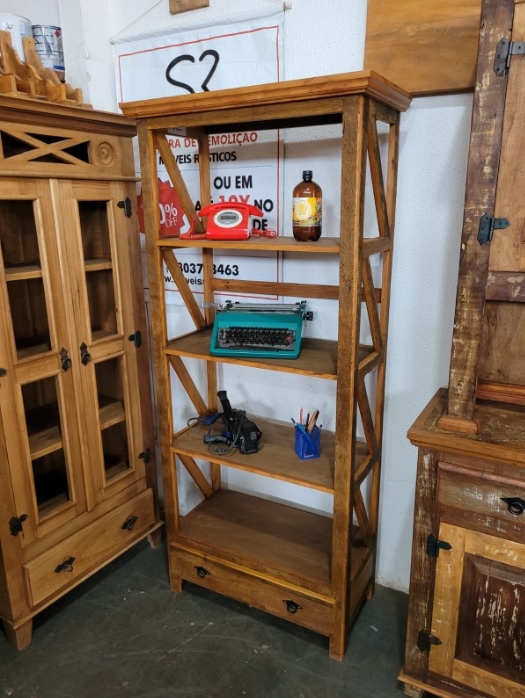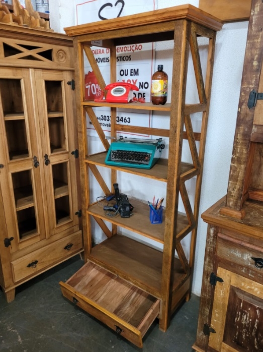 Livreiro 1,80X0,80MT Aberto 1G Madeira Demolição Rustico