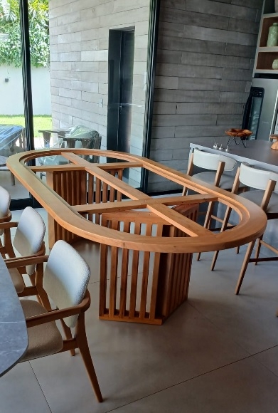 Base De Mesa C/ Pés Peroba Rosa Viga Comp 2,60X1,40MT ALT 0,79MT Esp Pedra 12MM