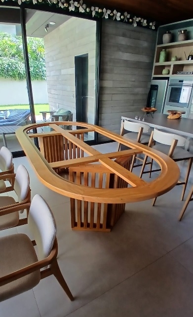 Mesa De Jantar Caixote 2,52X1,20 MT Pé Trapezio