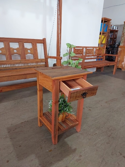 Mesa De Cabeceira 2T 1G 0,45X0,40 MT Madeira Demolição PS Rustico