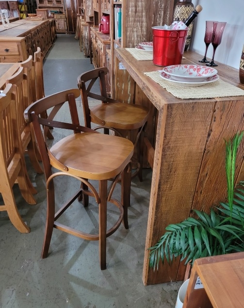 Banqueta Alta Bistro Estação Peroba Rosa JC Aparelhada Envernizada