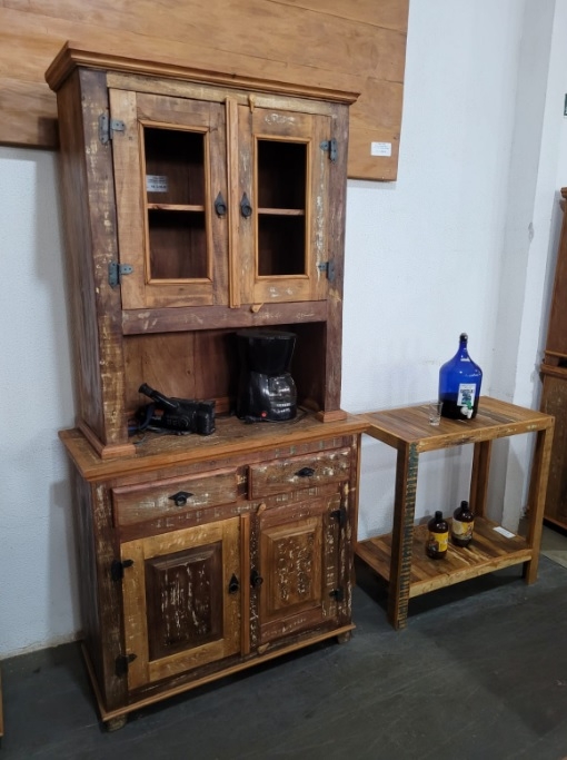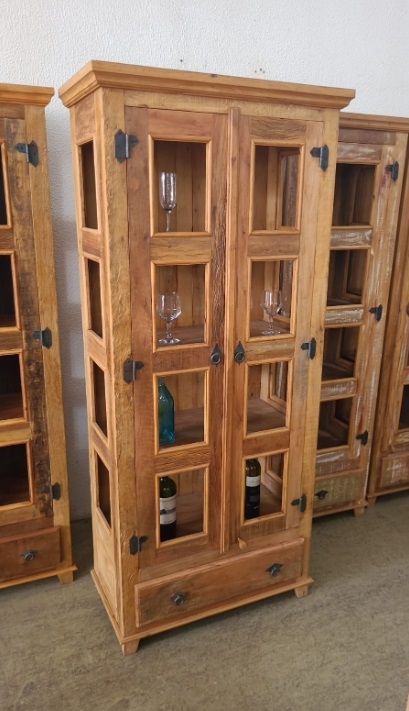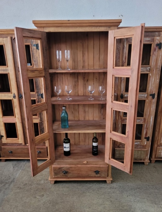Cristaleira Madeira Demolição 2,00X0,80MT 2P 3G Fech Lateral MG Rustico